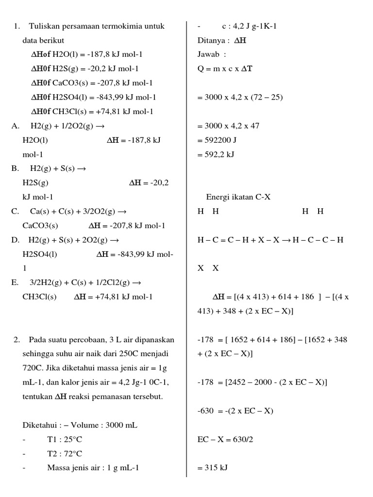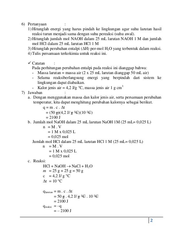 Maybe you would like to learn more about one of these? ( 1 mol air ). Berapakah perubahan entalpi (?hn) dari reaksi campuran tersebut. We did not find results for: Check spelling or type a new query.