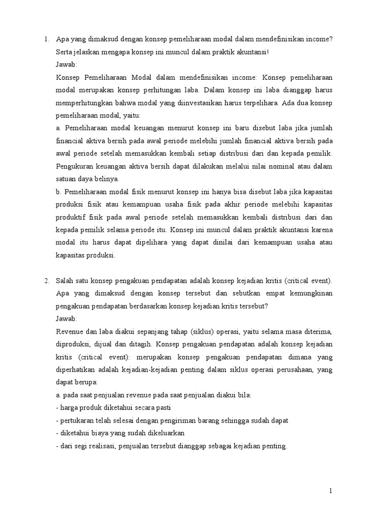 Dengan kata lain, penyusunan dan penyajian laporan keuangan sangat tergantung pada sudut pandangyang digunakan yaitu siapa yang dianggap paling berkepentingan terhadap laporan keuangan. Poin menarik dari inilah pertanyaan tentang pendapatan teori akuntansi, paling populer! Jumlah rupiah yang disetorkan oleh pemegang saham 2.laba ditahan yang merupakan sisa laba setelah pembagian dividen 3.jumlah rupiah yang timbul akibat apresiasi 4.jumlah rupiah donasi dari pihak nonpemegang saham 5.sumber lainnya laba ditahan. Oleh karena itu, teori akuntansi berisi keseluruhan analisis dan komponen*nya (asumsi, definisi, dan hipotesis) yg menjadi sumber acuan utk menjelaskan dan memprediksi gejala* atau peristiwa dlm akuntansi. Dalam menyelesaikan karya tulis ini, penulis menyadari telah banyak menerima bantuan dari berbagai pihak sehingga karya tulis yang sederhana ini dapat terwujud. Memenuhi berbagai kepentingan dalam membantu model proses pengambilan keputusan. Pertanyaan dan jawaban laporan keuangan konsolidasi akuntansi keuangan lanjutan memanglah menjadi topik pembahasan yang unik karena kita menggabungkan dua perusahaan atau lebih ya. Oleh guru ekonomi diposting pada november 23, 2020. Pemahamannya oleh praktisi dan penyusun standar akan sangat mendorong pengembangan serta perbaikan menuju praktik yang sehat. Perbedaan modal setoran dan laba ditahankomponen membentuk ekuitas: Teori ekuitas adlah teori yang menjelaskan sudut pandang yang digunakan dalam akuntansi berkaitan dengan penyusunan dan penyajian laporan keuangan. Beberapa pertanyaan terkait teori akuntansi. View makalah teori akuntansi ekuitas.pdf from econo 163 at islamic university of malang.