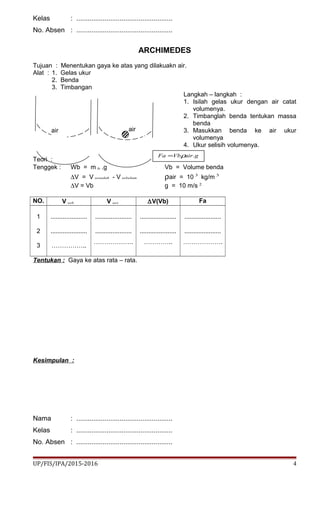 Assalamu'alaikum semuanya, video ini dibuat untuk memenuhi nilai praktikum fisika. Documents similar to lks ujian praktikum fisika kelas xii. Materi dibahas secara detail dilengkapi dengan contoh soal & pembahasan. 2 (dua) buah baterai 1,5 volt. Materi fisika kelas 12 (xii).