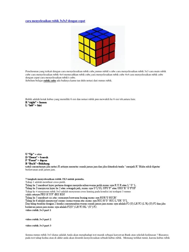 Cara Menyelesaikan Rubik 3Ã3 / 2 / Semua orang pasti pernah mendengar atau melihat rubik's cube.. Rumus menyelesaikan rubik bagi pemula. Menerapkan konsep m a t r i k s. cara kedua, sedikit lebih cerdik dari cara pertama. Merupakan hobi yang menyenangkan bagi orang. Sisi rubik yg hanya memiliki 1 warna saja, letaknya di bagian tengah dan biasanya dijadikan poros untuk memutar sisi rubik.