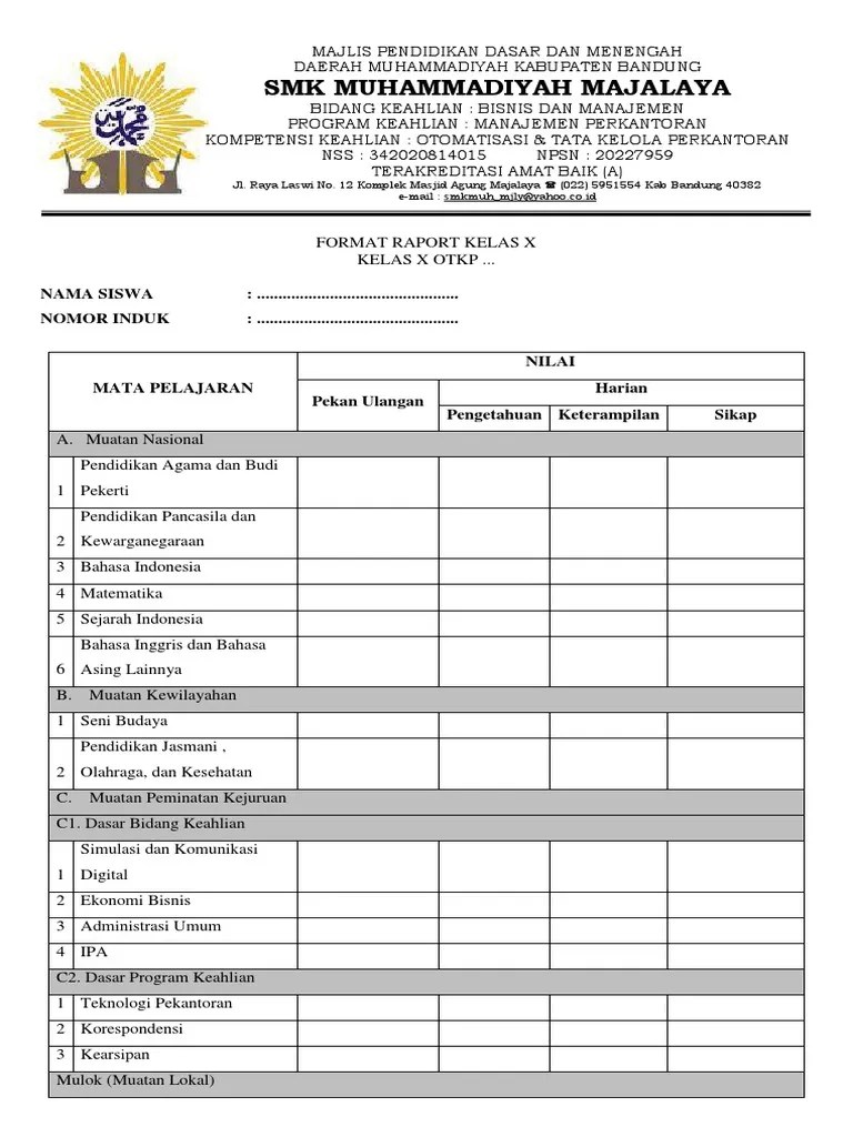Contoh Rapot Smk / Format Penilaian Harian K13 Untuk Sd Smp Sma Dan Smk Sederajat Pedia Pendidikan - Permendikbud 104 tahun 2020 tentang penilaian hasil belajar oleh pendidik pada pendidikan dasar dan menengah, tepat pada lampirannya memaparkan pedoman .