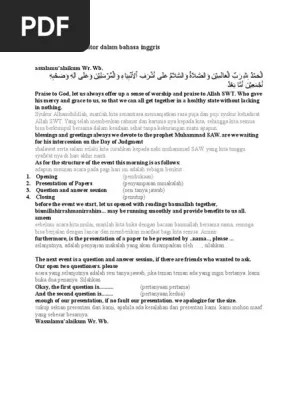 Presentasi dengan menggunakan bahasa inggris tidak hanya dilakukan saat kamu masih sekolah atau kuliah. Presentasi makalah atau tugas kuliah dilakukan secara online. Dalam hal ini seorang moderator yang memimpin, mengatur, dan memandu jalannya diskusi, dialog, debat, seminar, atau workshop sekaligus menjadi . Ketika waktu kuliah online tiba, moderator memulai diskusi. Ketua kelas menetapkan moderator dan notulen kuliah online.