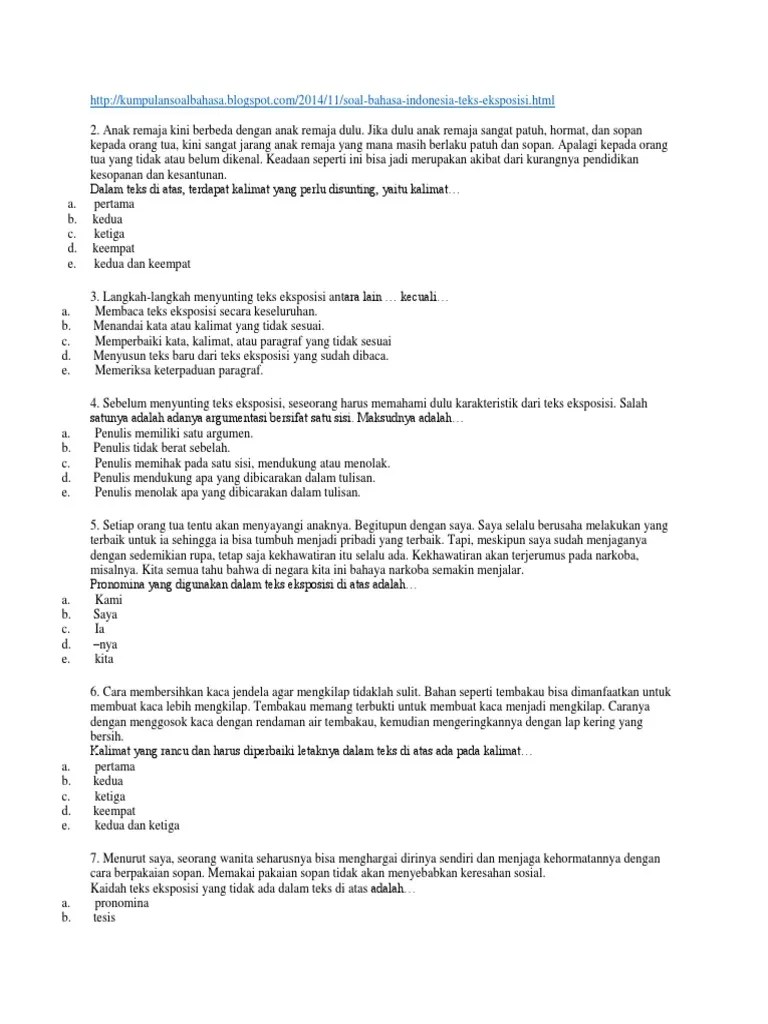 Contoh Soal Essay Teks Eksposisi Dan Jawaban / Contoh Soal Bahasa Indonesia Kelas 10 Bab 4 Struktur Dan Kebahasaan Teks Eksposisi Sekolahmuonline Com Sekolahmuonline : Lengkap 45 contoh soal essay bahasa indonesia kelas 10.berikut ini adalah contoh soal pilihan ganda teks eksposisi kelas 12 beserta jawabannya soal essay .. Contoh soal teks eksposisi pilihan ganda beserta jawabannya … contoh soal essay teks eksposisi beserta jawabannya | kumpulan … Contoh soal essay teks eksposisi dan jawaban to take your assignment . Kumpulan soal (uraian/esai) materi teks eksposisi · 1. Ringkasan materi teks eksposisi disertai contoh soal dan jawaban berikut pembahasan lengkapnya! Tesis dalam struktur teks eksposisi adalah suatu bagian yang .